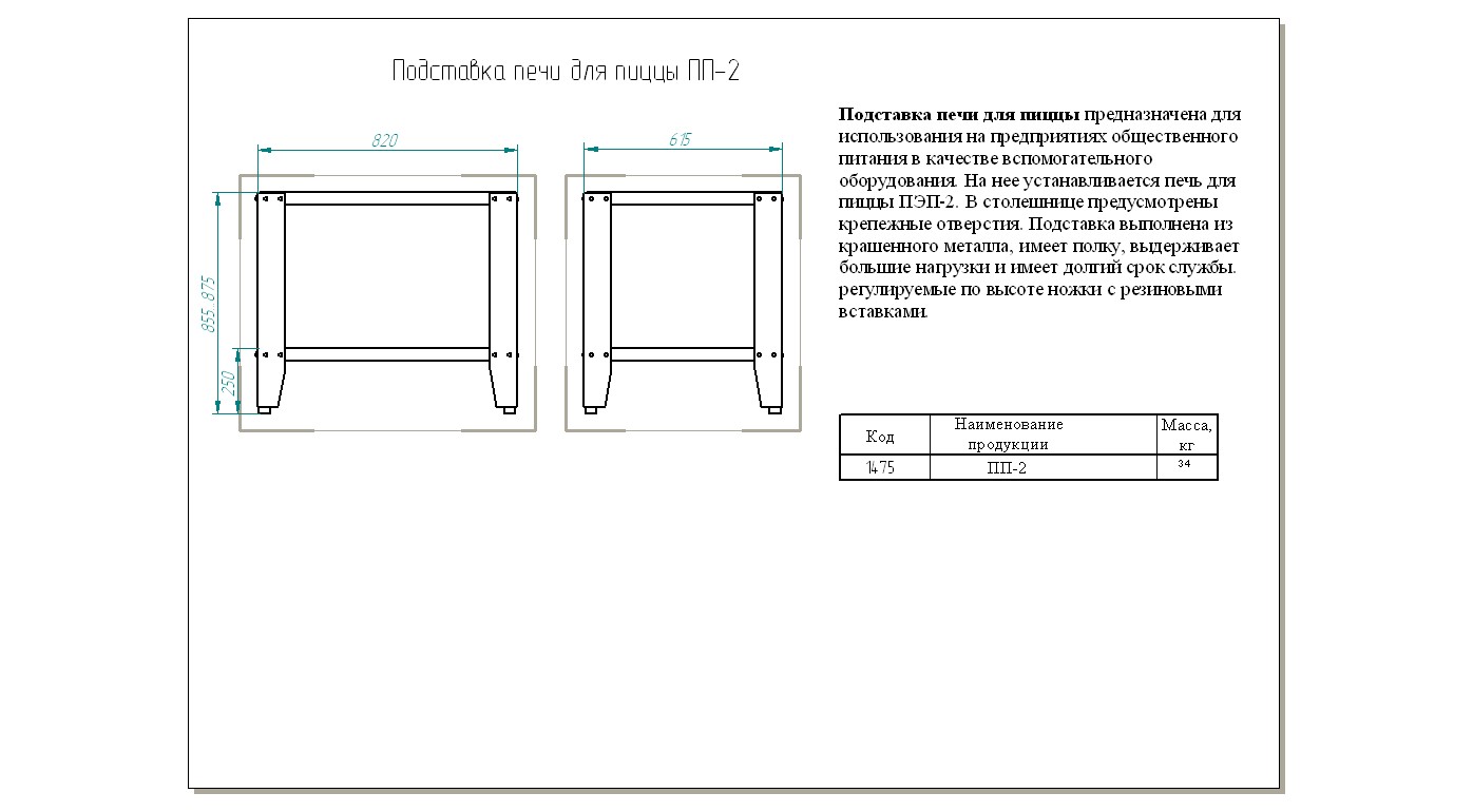 Подставка Abat ПП-2 используется совместно с печью для пиццы ПЭП-2 на предприятиях общественного питания и торговли. Модель оснащена регулируемыми по высоте ножками.