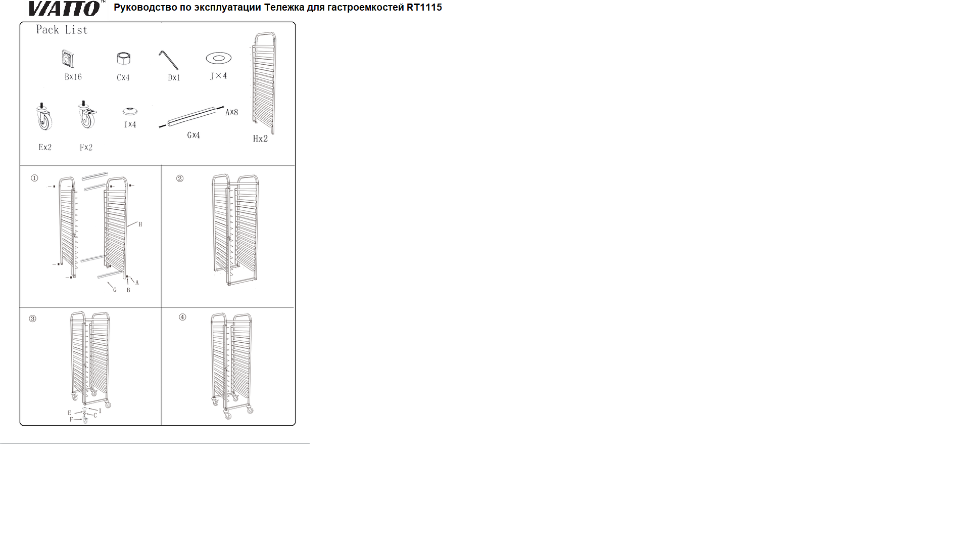 Инструкции к: Тележка для гастроемкостей 15xGN1/1, RT1115