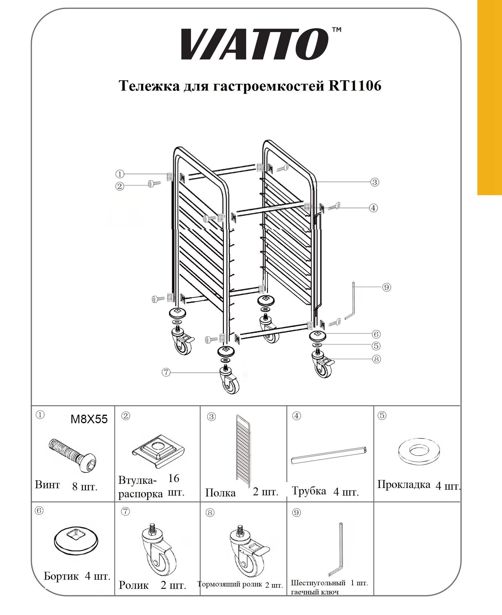 Инструкции к: Тележка для гастроемкостей 6xGN1/1, RT1106